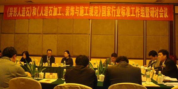 2012年3月16日,由中华人民共和国工业与信息化部批准立项的,由(国家)建筑材料工业技术监督研究中心和中国建筑材料联合会实体面材分会负责组织起草的《异型人造石》和《人造石加工、装饰与施工规范》国家行业标准工作组会议在广州云峰酒店盛大召开,